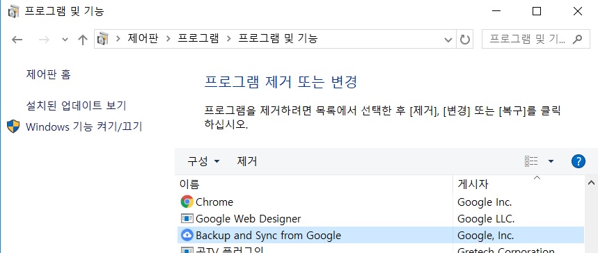 윈도우에서 구글드라이브 삭제, 제거 방법