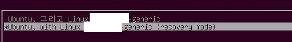 그리고 Ubunut, with Linux 0000000-generic (recovery mode로 들어간다.